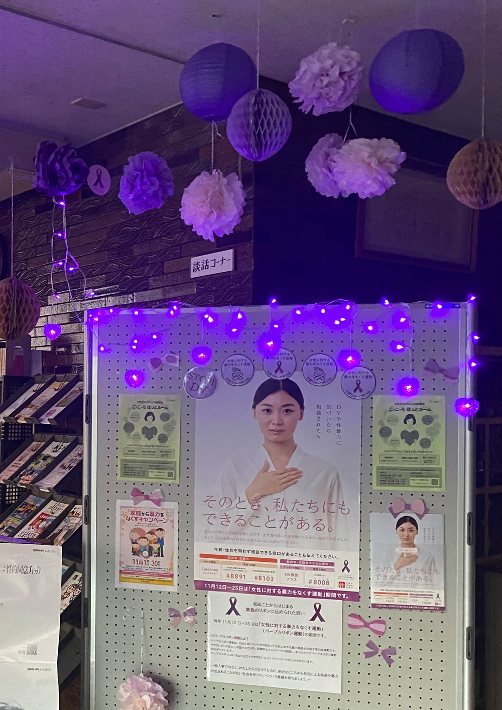- 毎年11月12日~25日は、「女性に対する暴力をなくす運動(パープルリボン運動)」期間です。